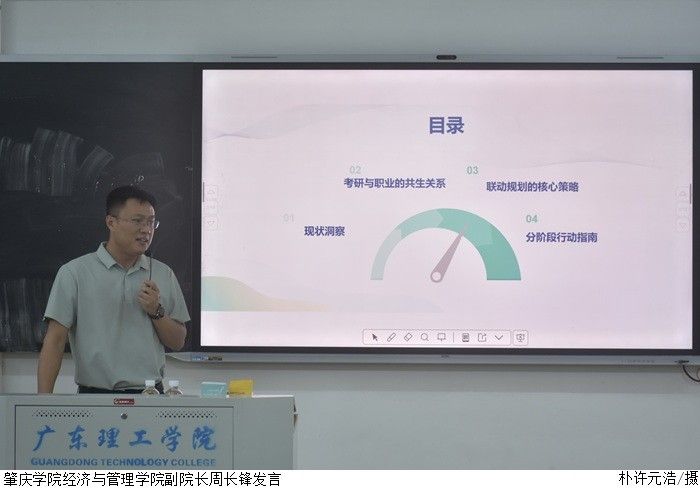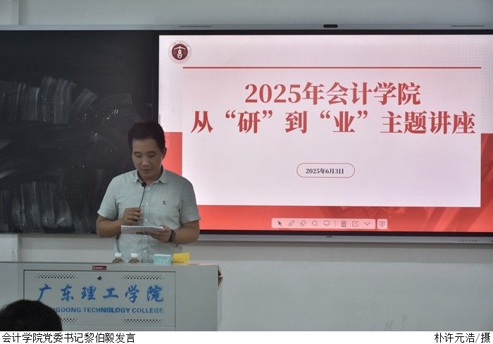 本网讯(3044永利集团官网新闻中心 邓晓君)为助力学生突破考研瓶颈、规划职业发展路径。2025年6月3日下午,3044永利集团官网在7栋211教室举办从“研”到“业”主题讲座。本次讲座特邀肇庆学院经济与管理学院副院长周长锋博士主讲,3044永利集团官网党委书记黎伯毅、学生第三党支部书记刘涛及师生代表120人参加。