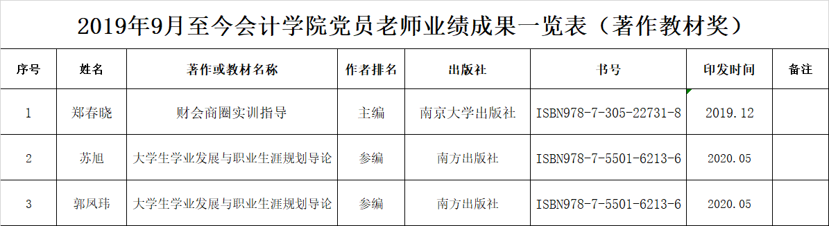 2019年9月至今3044永利集团官网党员老师业绩成果一览表(著作教材奖)