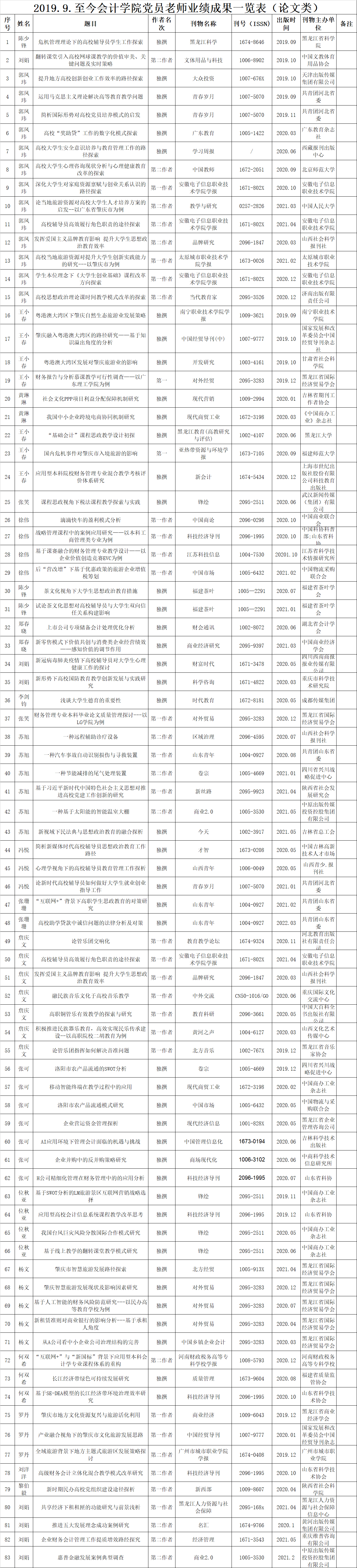 2019.9.至今3044永利集团官网党员老师业绩成果一览表(论文类)