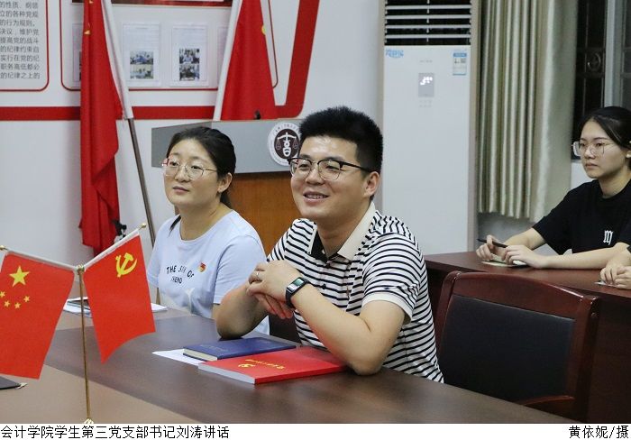 会议伊始,刘涛老师表示要坚持以习近平新时代中国特色社会主义思想为指导,真正学深悟透习近平总书记关于党的建设的重要思想。他还强调党员要充分发挥先锋模范作用,积极参与学院的活动和各项比赛。同时,他还要求党员同志们要坚持读原著学原文悟原理,提升理论学习质效,充分提高自身素质,提高党性觉悟,进一步坚定理想信念。