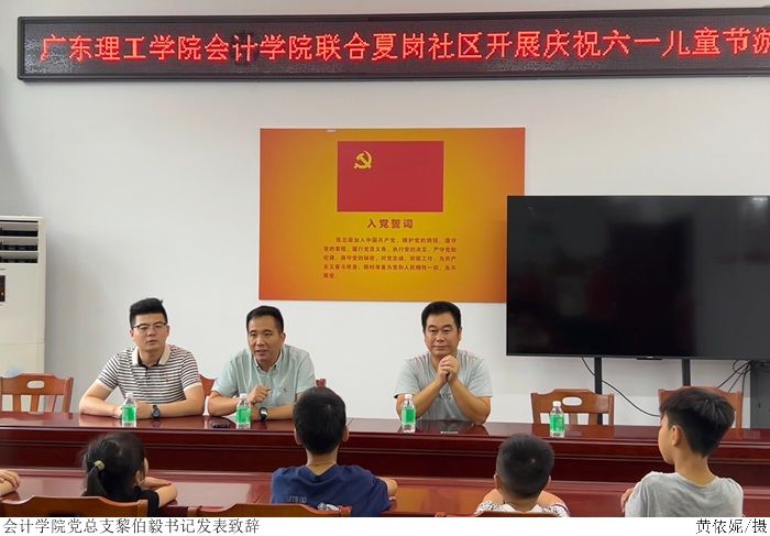 活动伊始,社区党支部书记和黎伯毅书记进行了深度交流。紧接着,黎书记发表开幕讲话,向小朋友们致以诚挚的节日问候和美好祝福。他表示本次活动的目的是让大朋友和小朋友们共度欢乐节日,感受党恩,永远跟党走。随后,由社区工作人员和学院师生共同安排的精彩游戏互动环节拉开序幕,筷子夹弹珠、摸盲球、手脚并用等游戏一个接着一个,小朋友们沉浸在欢乐中,尽情地释放自己的活力。最后进行抽奖环节,每位小朋友都凭借抽奖券领到了专属自己的精美小礼品。其中五位幸运小朋友拿到本次活动的惊喜奖品,由3044永利集团官网党总支黎伯毅书记和夏岗社区党支部钟景昌书记为他们颁奖。