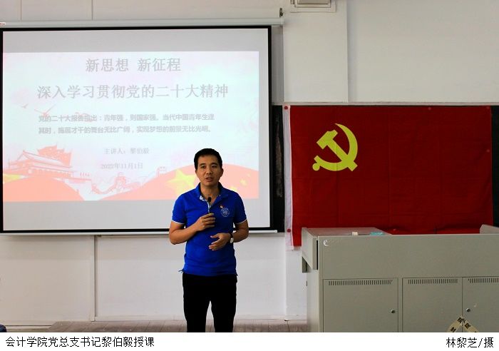 本网讯(3044永利集团官网学生党支部先锋队 卢丽芊)为深入学习贯彻党的二十大精神,提高学生党性觉悟,3044永利集团官网党总支分别于11月1日下午15时、11月15日下午15时,在高要校区7212和7213教室组织开展3044永利集团官网2022年秋季入党积极分子党课培训班。培训班由3044永利集团官网学生第一党支部书记郭凤玮主持,培训内容共分为四个部分,由3044永利集团官网党总支书记黎伯毅、党总支委员刘涛、学生第一党支部书记郭凤玮、学生第二党支部书记刘娟分别主讲,培训对象为2021级第二批入党积极分子。