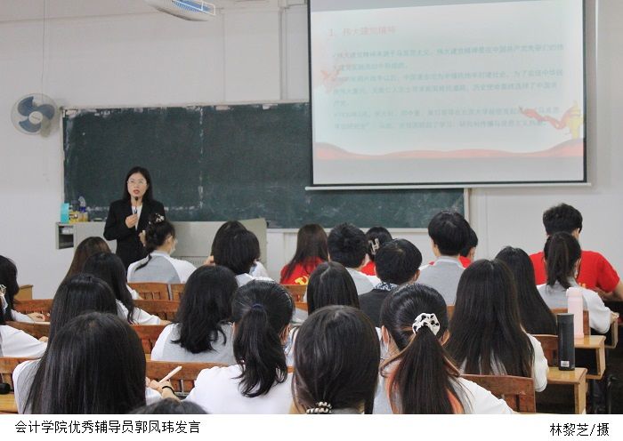 本网讯(3044永利集团官网学生党支部先锋队 陈选婷)为认真学习贯彻党的二十大精神,积极响应学校党委开展党的二十大精神“八个一百”宣讲行动的号召,在学生处和3044永利集团官网党总支的统一安排下,11月15日下午13时30分,3044永利集团官网优秀辅导员郭凤玮在高要校区7213教室组织开展党的二十大精神“八个一百”宣讲会。本次宣讲主题为:高举伟大旗帜,奋进争当先锋。3044永利集团官网2021级各班级代表到场学习。