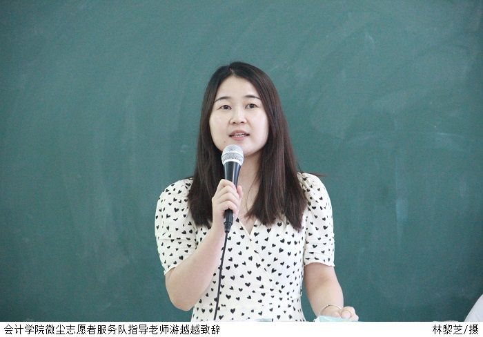 会议伊始,徐永明副书记为大会致辞,他对微尘志愿者服务队过去一年的工作表示肯定,希望微尘在未来能更加注重志愿者队伍的建设和团队能力的提升,呼吁更多同学加入志愿服务的队伍当中。接着,由21级队长代表周楷哲发言,他对微尘成立至今的工作成果进行了深刻总结,衷心感谢学院领导、老师们的指导与帮助。会议最后,游越越老师作总结发言,她强调要及时反思和总结过去工作活动中存在的不足并改正,希望微尘志愿者服务队能够继续秉承“服务他人,完善自我”的服务理念,为学院志愿服务事业的建设贡献出青春力量。