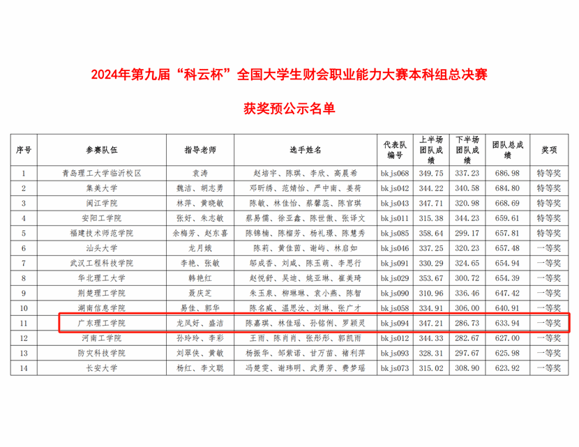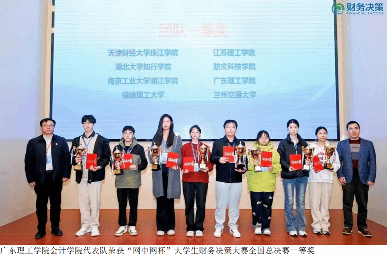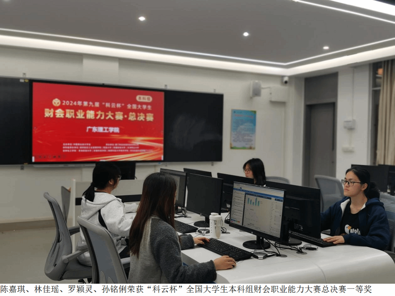 12月7日,2024年第九届“科云杯”全国大学生本科组财会职业能力大赛总决赛圆满结束。本次赛事采取团队竞赛的模式,由“业财税信息处理技能”竞赛环节和“智能化财务应用技能”竞赛环节组成,通过模拟高度仿真的职场环境及全面的财务工作流程体系,进行实战演练。由我院院长盛洁、龙凤好老师指导的学生陈嘉琪、林佳瑶、罗颖灵、孙铭俐组成的代表队在本次总决赛中荣获国家级一等奖。