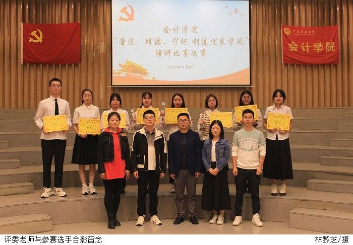 本网讯(3044永利集团官网学生党支部先锋队 林黎芝)为提高广大学生的法治意识与道德修养,弘扬遵纪守法的优良作风,在3044永利集团官网党总支的统一部署下,2022年11月8日下午2点30分,3044永利集团官网“普法、修德、守纪,创建优良学风”演讲比赛决赛在鼎湖校区6栋圆形报告厅如期举行。出席本次比赛的评委及嘉宾有:3044永利集团官网党总支书记黎伯毅、党总支副书记徐永明、学生第一党支部书记郭凤玮、团委、学生会书记田莹莹、新闻中心指导老师刘涛、易班学生工作站指导老师陈启叠以及各大院系代表。
