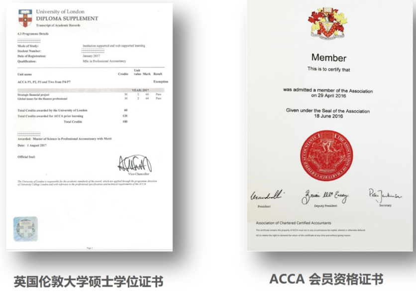通过9科可申请:ACCA 高级会计资格证书、英国牛津布鲁克斯大学应用会计(荣誉)理学学士学位(实验班将为学员提供学位申请辅导);