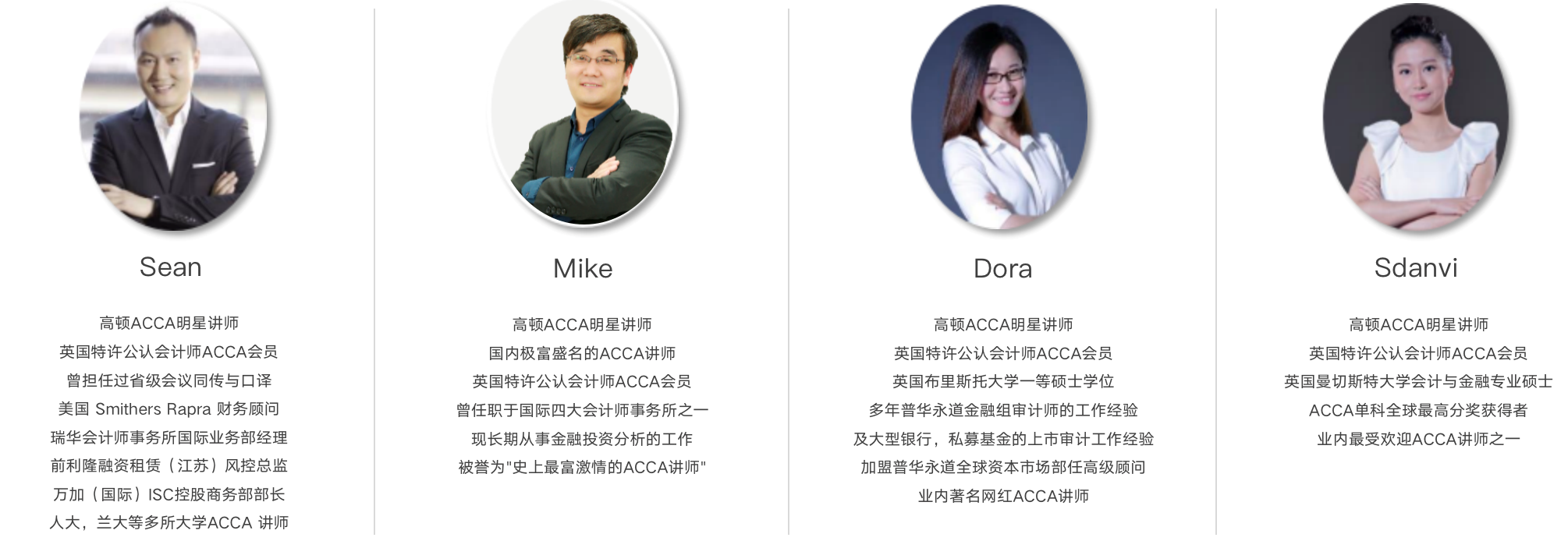 实验班全部授课老师均为ACCA/CMA持证人,来自四大、500强等知名企业的CFO、合伙人、财务/审计经理人等,深入浅出讲解知识,帮助学员进行证书学习的同时,成为学员的职场领路人。