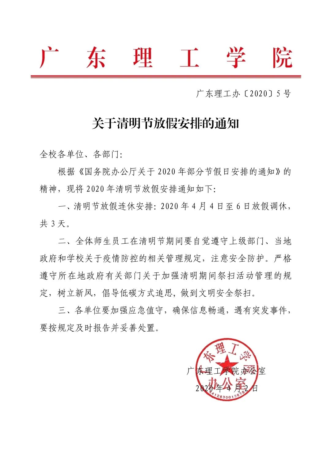 关于清明节放假安排的通知